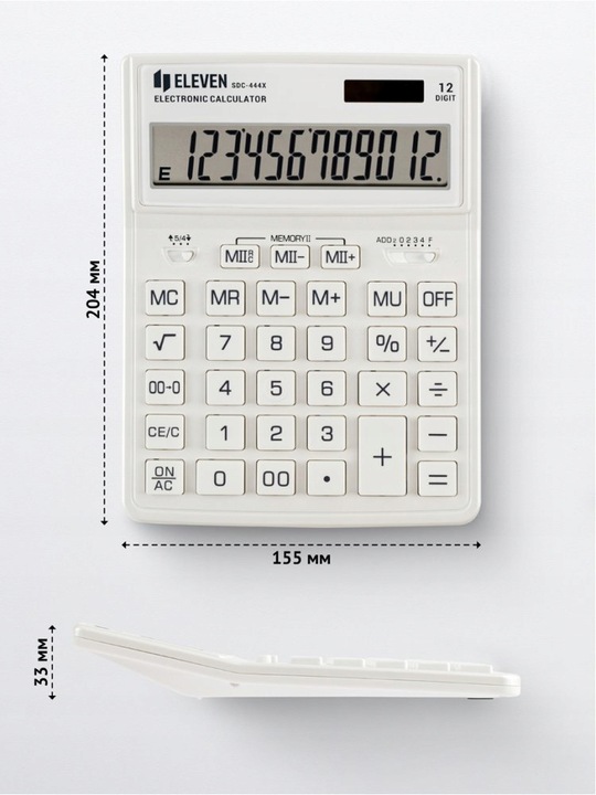 Eleven SDC-444XR to kalkulator biurowy najwyższej jakości. Posiada podwójne zasilanie - słoneczne i bateryjne GP195, dzięki czemu sprawdzi się w każdej sytuacji i będzie niezawodny.