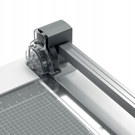 Jest lekki, ale solidny - umozliwia szybkie i precyzyjne ciecie do 10 kartek A4 (80 g/m?) jednocześnie. Latwo go przechowac, gdy nie jest potrzebny. Przezroczysta szyna prowadząca umozliwia śledzenie ciecia, a wygodny uchwyt glowicy tnącej zapewnia komfort uzytkowania. Naniesione na powierzchnie roboczą linie siatki metrycznej i zacisk papieru ulatwiają odpowiednie ulozenie papieru.