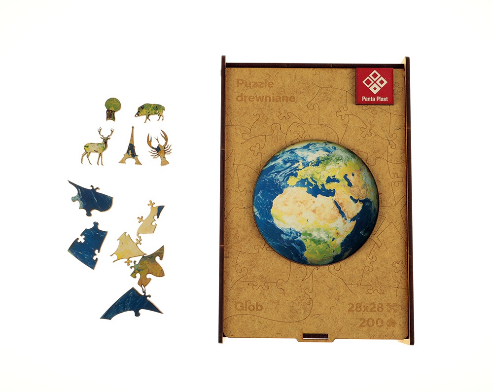 Puzzle drewniane 200 elementów 28x28cm GLOB 0422-0003-04 Panta Plast - pu 0020226